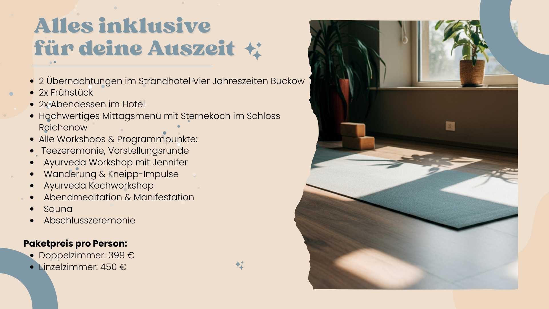✨ Special Events wie Retreats, Business-Workshops, Beauty-Talks oder Achtsamkeitstage